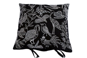 Cotton Cushion Cover, Black-&-Grey Hand-embroidered, "Fauna"