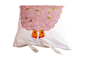Cotton Cushion Cover, White Hand-embroidered, "Devi's Feet"