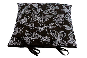 Cotton Cushion Cover, Black-&-Grey, Hand-embroidered, "Butterflies"
